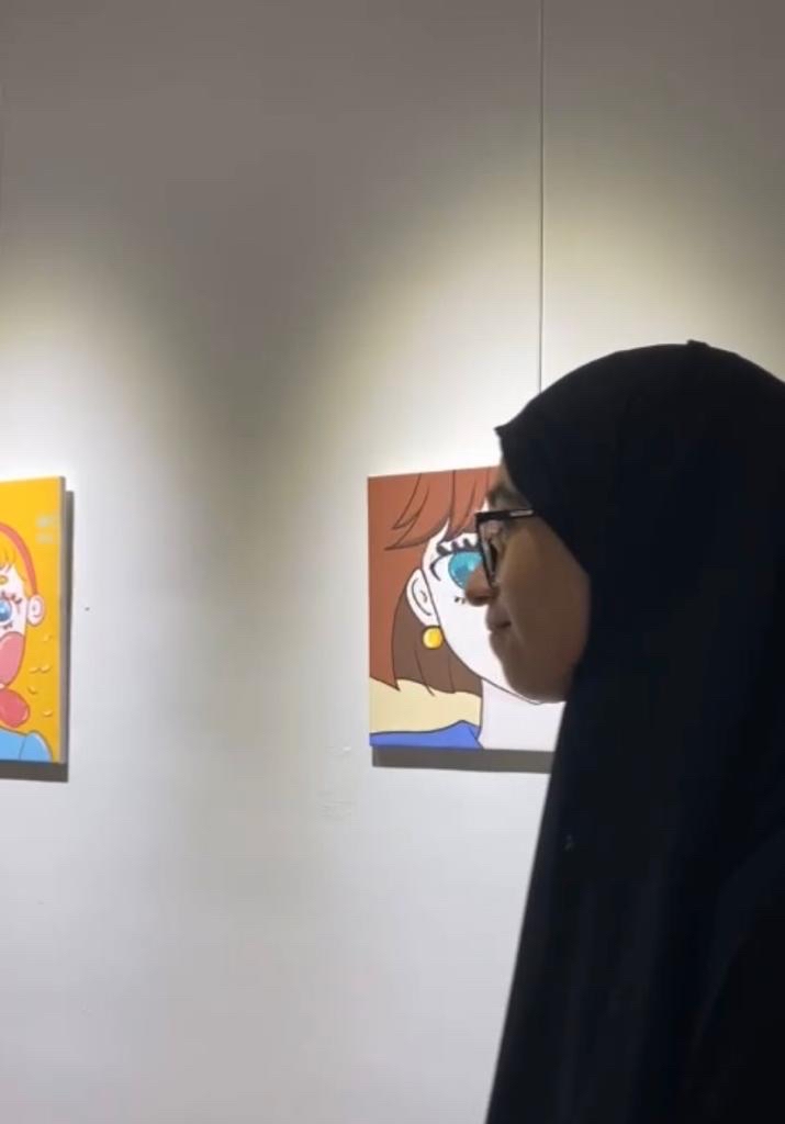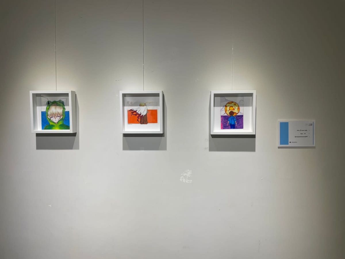 وشاركت شقيقتها سارة بثلاث لوحات حجم A3 من الفن التعبيري السريالي، والتي استخدمت فيها الألوان المائية وبعض الأحبار.
