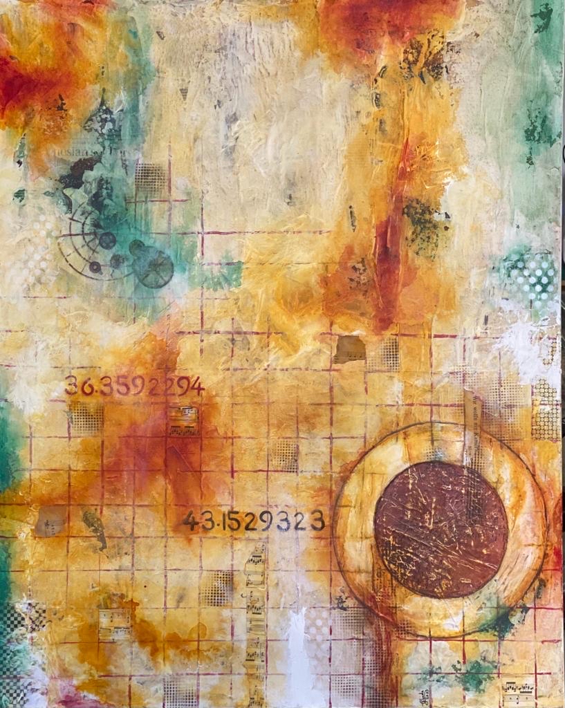 وذكرت الفنانة الحسن أنها قدمت عملين في المعرض بأسلوب الكولاج باستخدام الورق والمعاجين على الكانفاس.