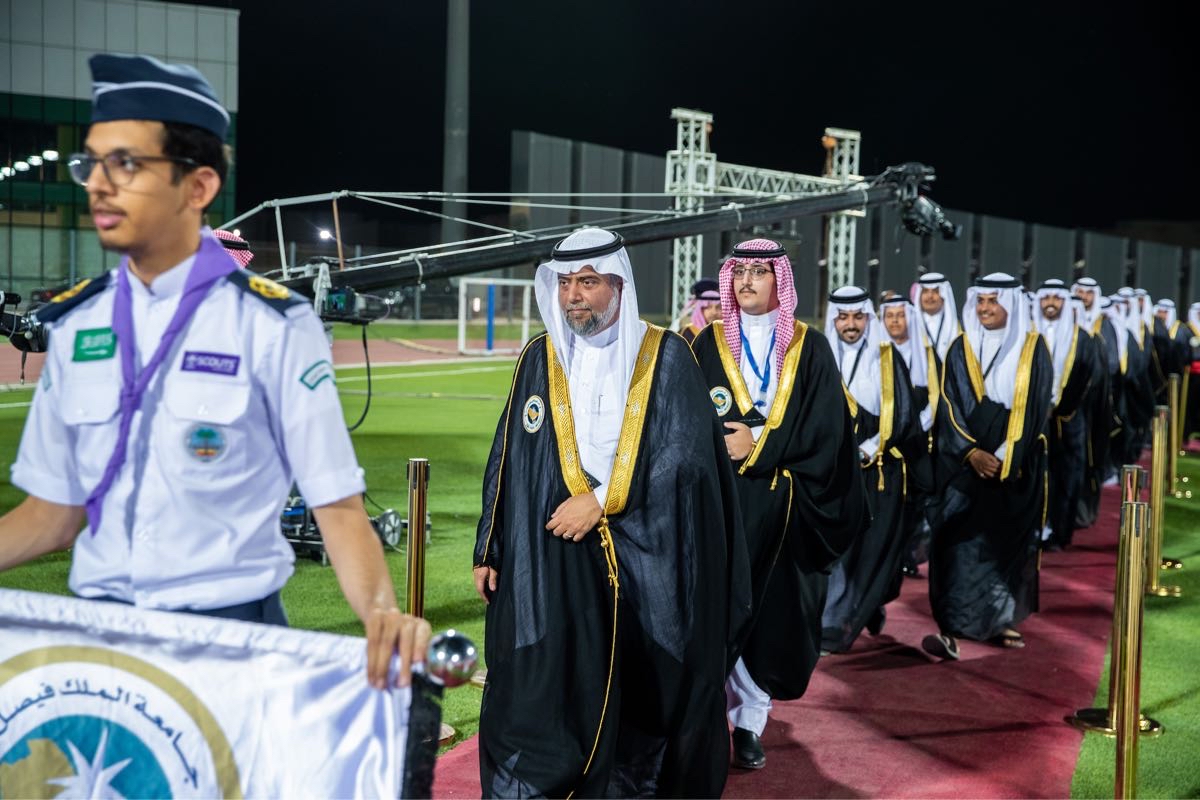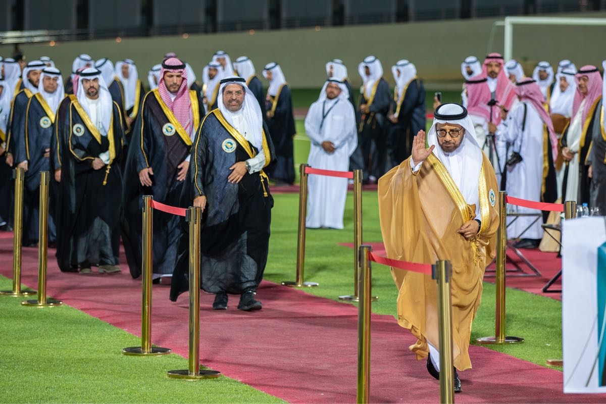 وانطلقت المسيرة الأكاديمية يتقدمها رئيس جامعة الملك فيصل الدكتور محمد العوهلي، وأصحاب السعادة أعضاء مجلس الجامعة.