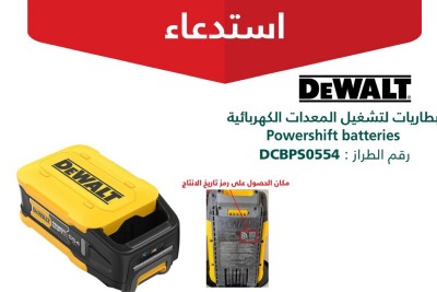 أعلنت وزارة التجارة استدعاءً عاجلاً لبطاريات معدات كهربائية من علامة ”DEWALT“ لاحتمالية نشوب حريق، داعية المستهلكين للتوقف فوراً عن استخدامها واستبدالها مجاناً لضمان سلامتهم. ويشمل الإجراء التحذيري بطاريات ”PowerShift“ التي تحمل رقم الطراز ”DCBPS0554“، وتحديداً الدفعات المنتجة خلال الفترة الزمنية الممتدة من بداية يناير 2024 وحتى منتصف عام 2025. وتكمن خطورة هذه الأجهزة في عيب مصنعي يؤدي إلى ارتفاع مفرط في درجة حرارة البطارية أثناء التشغيل، مما يشكل تهديداً مباشراً بوقوع حرائق... |
