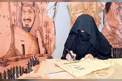 ”سلمى“.. معلمة متقاعدة تحترف النقش على الجلود والمعادن