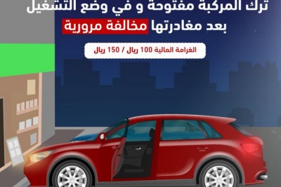 غرامة 150 ريالًا عند ترك المركبة والمحرك في وضع التشغيل.. تعرّف على التفاصل