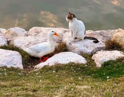 عاش زوار كورنيش مدينة الخبر حالة من الدهشة والإثارة بسبب غريب وفريد من نوعه، رصدوا بطة بيضاء تلاحق قطة من مكان لآخر دون ملل. وأصبح مشهد تحرك البطة والقطة من مكان لآخر محط انتباه المارة وأثار فضول الجميع، حيث المعتاد أن القطط تفترس البط دون أن تصاحبها. بدأ الناس في التوافد بأعداد كبيرة حتى من خارج المدينة لمشاهدة هذا الثنائي وتوثيق سلوكهما غير المألوف. وشاركوا بعدة فيديوهات عبر وسائل التواصل الاجتماعي، ومنهم من... |