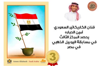 الحبارة ثالثا في مسابقة اليوبيل الذهبي للكاريكاتير بمصر