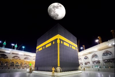 القمر يتعامد على الكعبة المشرفة فجر الجمعة