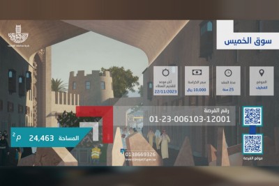 طرحت بلدية محافظة القطيف، فرصة استثمارية في مجال إنشاء وتشغيل سوق الخميس، عبر بوابة الاستثمار البلدي ”فرص“. وقال رئيس البلدية م. صالح القرني: إن الفرصة تتمثل في إنشاء وإدارة وتشغيل سوق الخميس التراثي، بمساحة تبلغ 24463 م2، وبنسبة بناء تصل إلى 60% ومدة عقد تبلغ 25 سنة. وأشار إلى بأنه بالإمكان الدخول على بوابة الاستثمار البلدي ”فرص“، لمشاهدة تفاصيل الفرصة وموقعها على خرائط جوجل ماب، والاطلاع على مسودة كراسات الشروط والمواصفات وإمكانية... |