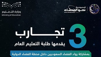 تبدأ اليوم أولى التجارب العلمية حول الفضاء، التي يُنفِّذها أكثر من 9 آلاف طالب وطالبة على الأرض، بالارتباط اللحظي مع تجارب رائدَي الفضاء السعوديَّين «ريانة البرناوي وعلي القرني» في محطة الفضاء الدولية. ويُنفِّذ الطلبة 3 تجارب علمية في أوقات مختلفة، تستهدف كل تجربة مرحلة تعليمية معينة، بدءًا بتنفيذ تجربة ”انتشار الألوان السائلة“ لطلاب وطالبات الصفوف العليا من المرحلة الابتدائية اليوم السبت، وتجربة ”الطائرات الورقية الفضائية“ لطلاب وطالبات المرحلة المتوسطة يوم الأحد... |