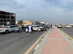 بالصور.. إصابة شاب في حادث مرّوع على جسر شارع الرياض بالقطيف