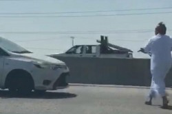 وثّق مقطع فيديو متداول مطاردة مثيرة بين مركبيتن على طريق الدمام الجبيل السريع انتهت بإشهار أحد السائقين سلاح ناري ”رشّاش“ في وجه السائق الآخر. وأظهر مقطع فيديو المتداول عبر وسائل التواصل ... |