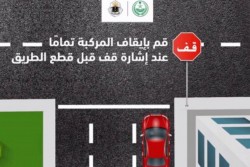 أكّدت إدارة المرور أن عدم الوقوف تمامًا عند إشارة ”قف“ الموضوعة في الشوارع؛ يعدُّ مخالفة مرورية عقوبتها لا تقل عن 500 ريال ولا تزيد على 900 وفقًا لجدول المخالفات رقم ... |