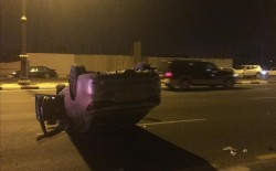 إصابة سائق في انقلاب مركبة على طريق أحد