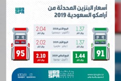 أعلنت أرامكو السعودية عن أن أسعار البنزين المحدّثة ابتداءً من 14 أبريل 2019م ستكون على النحو الآتي: «بنزين 91:1,44 ريال لكل لتر»، و«بنزين 95:2,10 ريال لكل لتر»، وذلك خلال الربع الحالي ...