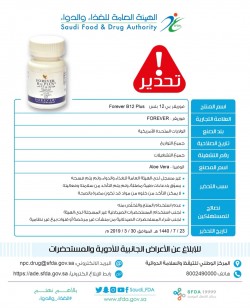 حذرت الهيئة العامة للغذاء والدواء من استخدام المكمل الغذائي فوريفر بي12 بلس «Forever B12 Plus». وأوضحت من خلال تغريدة نشرتها في حسابها الرسمي أمس السبت ان المكمل العذائي غير مسجل ...