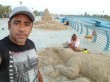 بالصور.. فنانان ينحتان 7 مجسمات برمال العقير في مهرجان «عيدية»