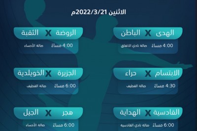 تتواصل يوم غدًا الاثنين 21 مارس 2022م منافسات بطولة دوري أندية الدرجة الأولى لكرة اليد بإقامة ست مباريات ضمن الجولة السابعة عشر. إذ ستحتضن صالة مدينة الأمير نايف بن العزيز الرياضية بالقطيف مواجهة المتصدر فريق الابتسام مع نظيره حراء عند الساعة 4:30 مساءً، وسيتبعها بنفس الصالة عند الساعة 6:00 مساءً مباراة الجزيرة مع الخويلدية. وعلى صالة مدينة الأمير عبد الله بن جلوي الرياضية بالأحساء، سيلعب الروضة مع الثقبة عند الساعة 4:00 مساءً، ... |
