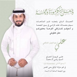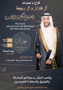 رُزق الشاب منتظر عبدالله آل حمدان بمولود اتفق وحرمه على تسميته «مهدي». أسرة ”جهينة الإخبارية“ تبارك له على المولود جعله الله من مواليد السعادة واقر الله به عين والديه. ... |