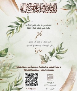 احتفلت عائلة المطرود والمغلق في صفوى بعقد قران الشاب حسين عبدالله محمد المطرود على كريمة الحاج عبدالله علي المغلق وسط فرحة الأهل والأصدقاء ومحبي العريسين. أسرة ”جهينة الإخبارية“ تهنئ العريسين وعائلتيهما وتسأل الله ان يبارك لهما، متمنين لهما حياة سعيدة ‏ ...
